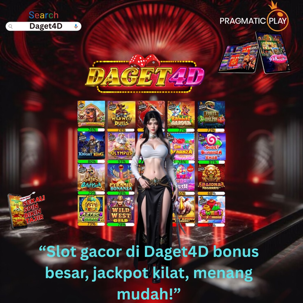Daget4D menawarkan ratusan game slot dari provider ternama seperti Pragmatic Play, PG Soft, Habanero, Joker Gaming, dan Spadegaming. Setiap game didukung RTP tinggi, fitur free spin, bonus acak, serta jackpot progresif yang siap meledak kapan saja. Koleksi pasaran togel juga lengkap: Singapore, Hongkong, Sydney, dan pasaran lokal dengan result tercepat dan data syair resmi.